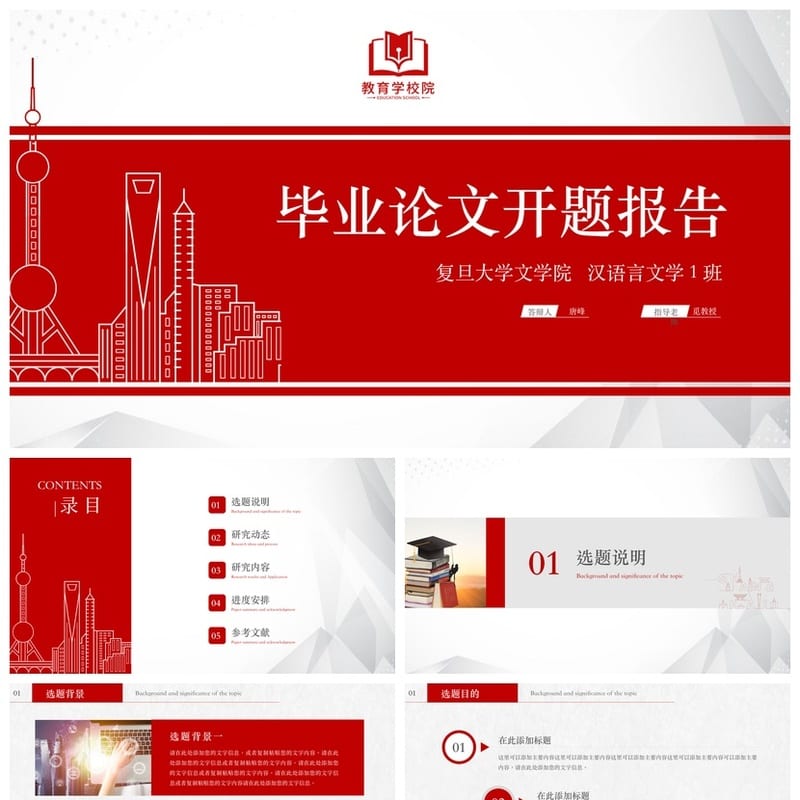邵阳学院 学术风开题报告PPT模板 毕业答辩素材 论文答辩PPT