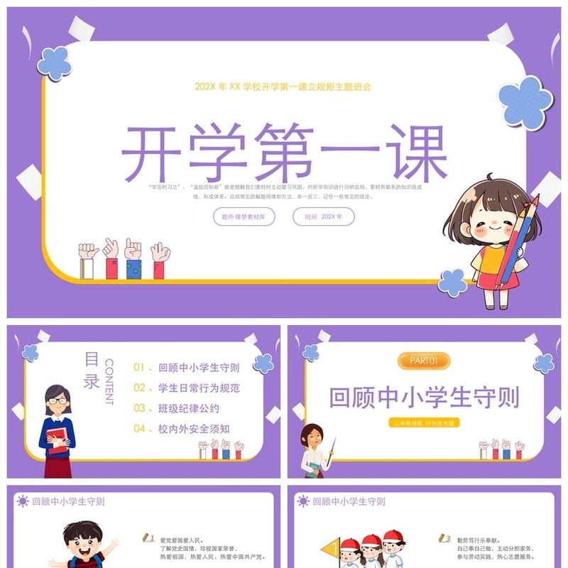 开学安全教育PPT模板 中小学生第一课班会课件素材